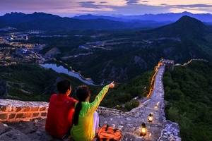 提一盏灯脚踏长城,搭乘全封闭式缆车,登上唯一夜间开放的长城,俯瞰灯火倾城的小镇。司马台长城是我国目前唯一开放夜游的长城,牵着爱人的手,提一盏青灯,在群山万壑之巅,一起拥抱晚霞与星空,俯瞰小镇的华灯初上与万家灯火。